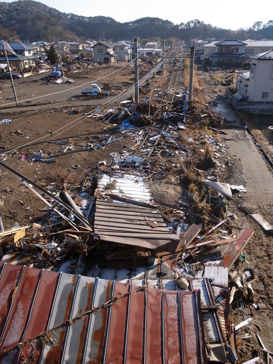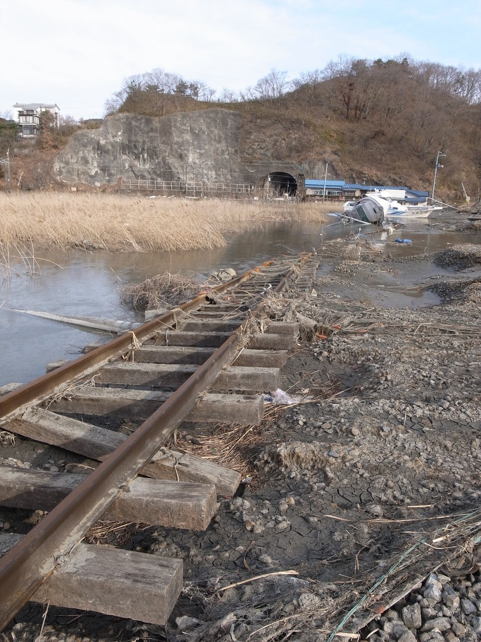 地元住民によると、付近の店の商品は震災5日後には全部なくなっていた=JR仙石線野蒜駅